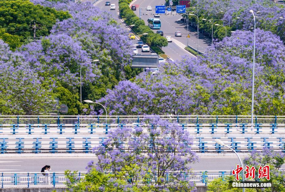 重慶街頭藍(lán)花楹盛開 城市道路變身“紫色花海”(2)