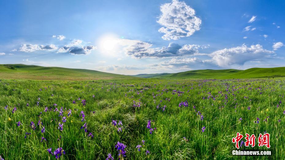 近日,內(nèi)蒙古自治區(qū)通遼市扎魯特旗阿日昆都楞鎮(zhèn),80萬畝無人無畜封禁保護(hù)區(qū)草原進(jìn)入一年中的盛花期,芍藥花、薩日朗、金蓮花、柳蘭、黃花……競相開放。圖為草原上鳶尾花盛開。青格樂 攝