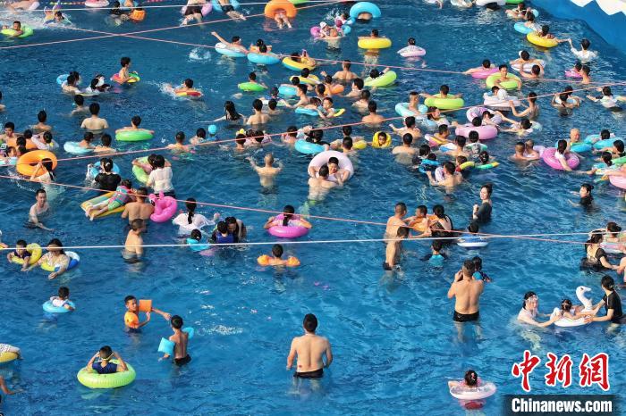 酷暑天氣,水上樂園成為消暑納涼的好去處。7月12日晚,眾多游客走進(jìn)重慶涪陵紅酒小鎮(zhèn)水上樂園玩水沖浪,享受夏日清涼。圖為游客在水上樂園玩水沖浪。楊孝永 攝