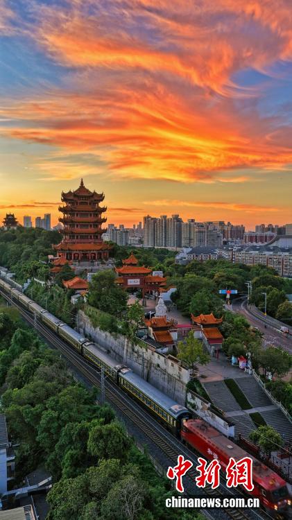 湖北武漢:朝霞潑灑 黃鶴樓美如油畫(2)