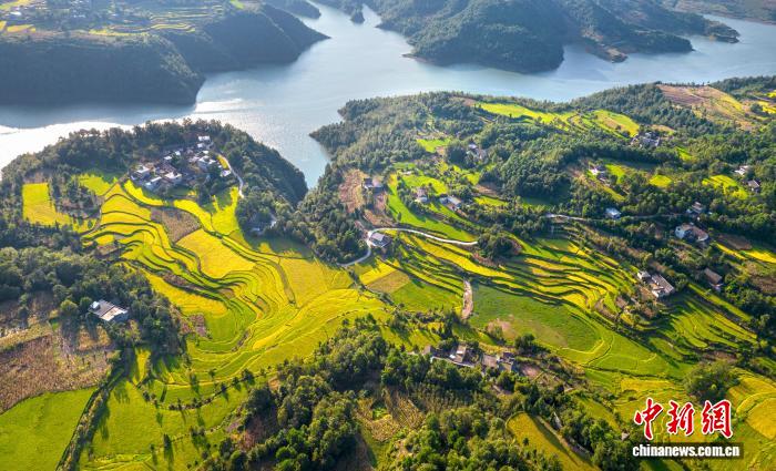 9月2日,地處烏蒙山深處的貴州省黔西市錦星鎮(zhèn)洪湖村,田野里金黃的稻谷豐收在即,與民居、青山相互映襯,呈現(xiàn)出一幅美麗的豐收畫卷。史開心 攝