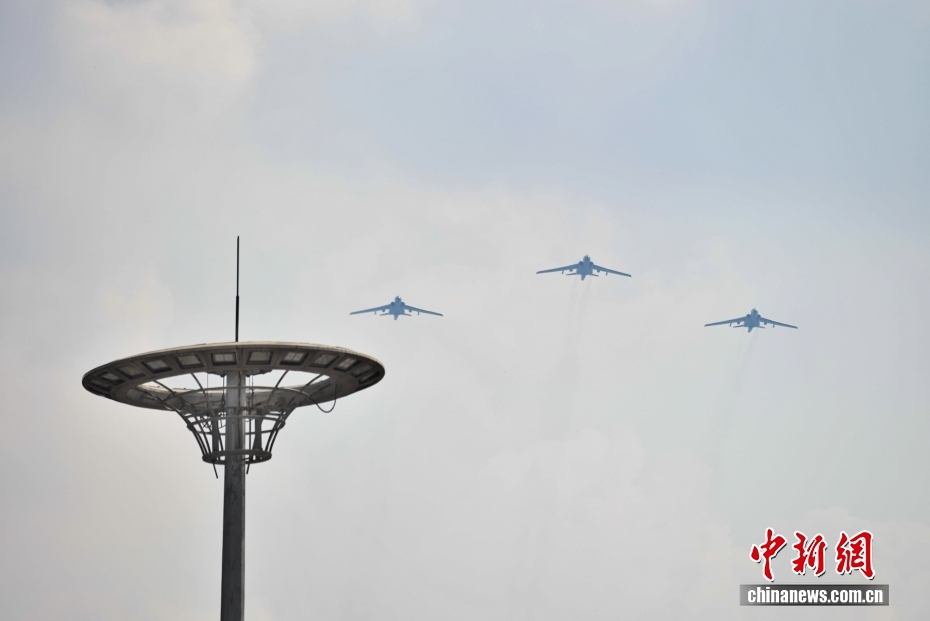 9月3日,紀(jì)念中國人民抗日戰(zhàn)爭暨世界反法西斯戰(zhàn)爭勝利80周年大會(huì)在北京隆重舉行。圖為受閱的空中梯隊(duì)從北京站上空飛過。中新社記者 楊華峰 攝