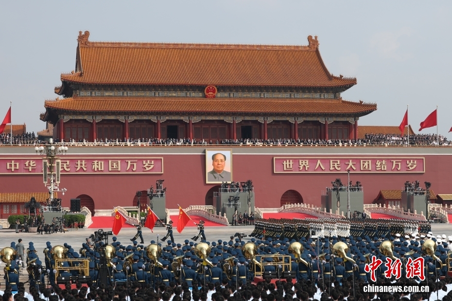 9月3日,紀(jì)念中國人民抗日戰(zhàn)爭(zhēng)暨世界反法西斯戰(zhàn)爭(zhēng)勝利80周年大會(huì)在北京天安門廣場(chǎng)隆重舉行。圖為中國人民解放軍儀仗方隊(duì)接受檢閱。中新社記者 富田 攝