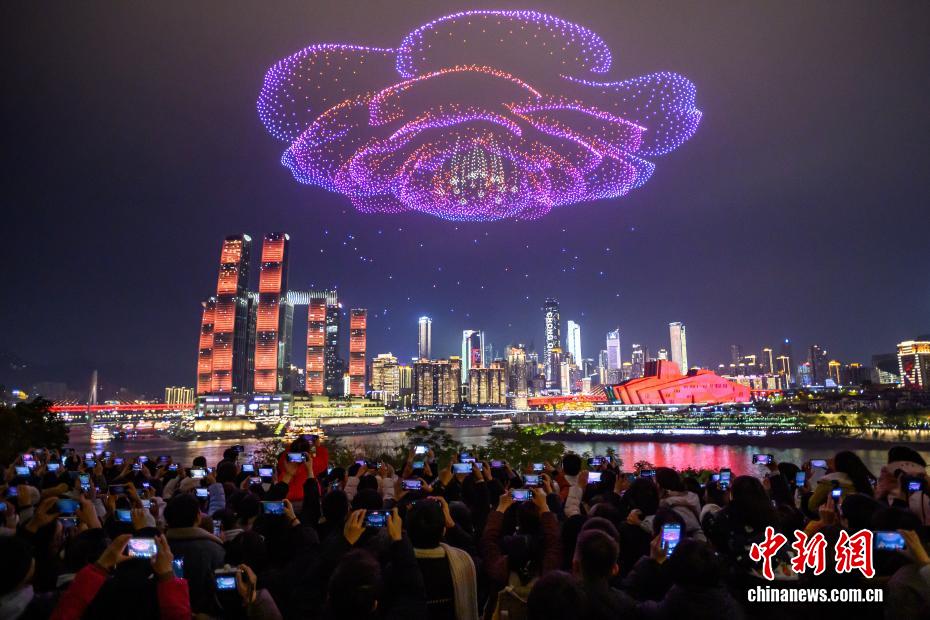 元旦假期 重慶無(wú)人機(jī)燈光秀點(diǎn)亮絢麗夜空(3)