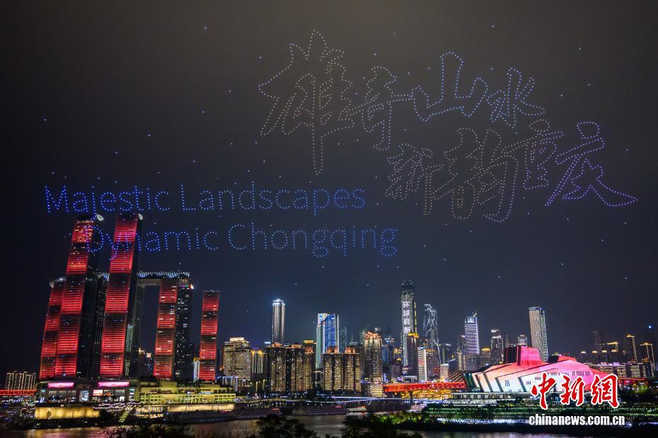 1月2日晚,“新韻重慶”無(wú)人機(jī)燈光秀在重慶兩江交匯的夜空精彩上演。數(shù)千架無(wú)人機(jī)以天為幕、以城為景,變換出“慶元旦”“新年快樂”等圖案,吸引眾多市民和游客駐足觀賞、拍照記錄,沉浸式感受節(jié)日氛圍。圖為無(wú)人機(jī)在夜空呈現(xiàn)“雄奇山水 新韻重慶”字樣。