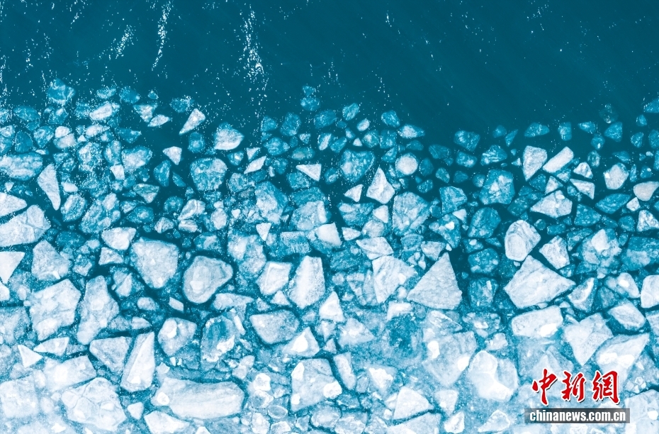 近日,西藏山南市浪卡子縣,普莫雍措部分水面結(jié)冰形成冰推景觀。圖/視覺中國