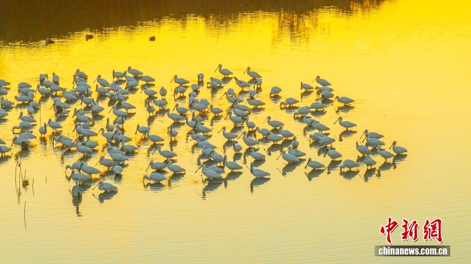 2025年12月6日,候鳥(niǎo)飛抵江蘇興化里下河國(guó)家濕地公園,它們成群結(jié)隊(duì)在淺灘覓食、休憩,成為冬日里一道靚麗的風(fēng)景線。圖/視覺(jué)中國(guó)