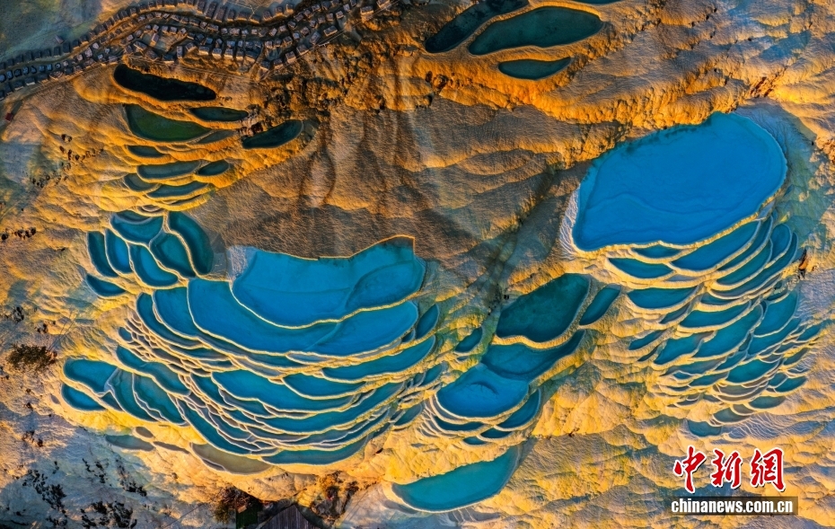 云南迪慶:日出時(shí)分 白水臺(tái)“仙人遺田”染金邊