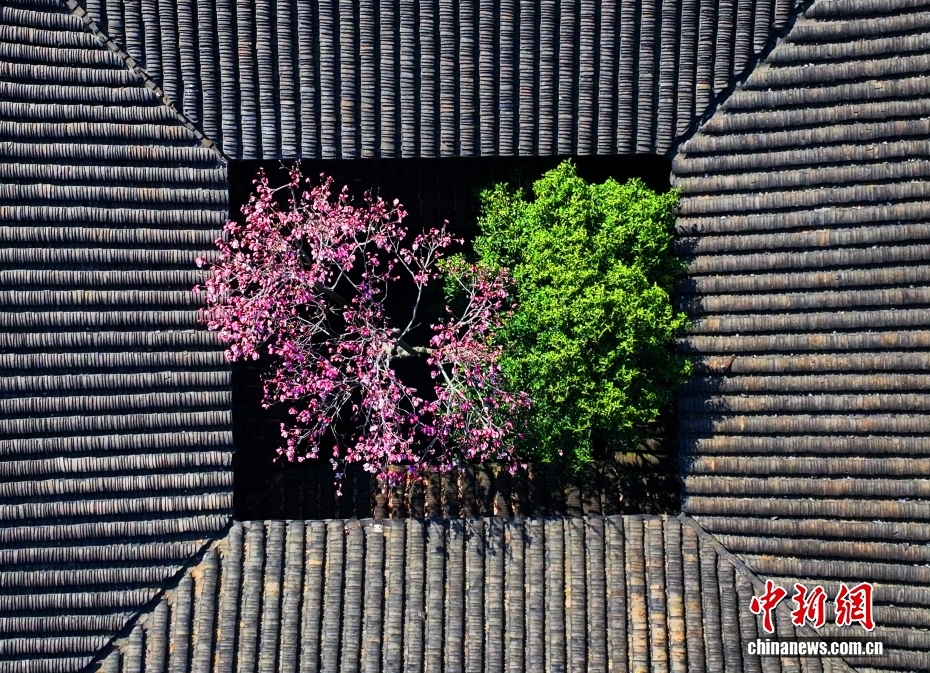 3月13日,俯瞰江蘇省蘇州古典園林耦園紅花綠葉相映成趣別有韻味。連日來(lái),江蘇蘇州天氣持續(xù)晴好,春和景明。圖/CNSphoto 王建中 攝