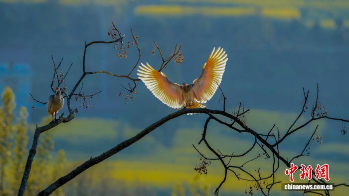 近日,“朱鹮之鄉(xiāng)”陜西省漢中市洋縣春意盎然,朱鹮或在花間翩然飛過,或在花田枝頭棲息,構(gòu)成一幅和諧美好的生態(tài)畫卷。圖為朱鹮在樹枝上嬉戲。劉齊軒 攝