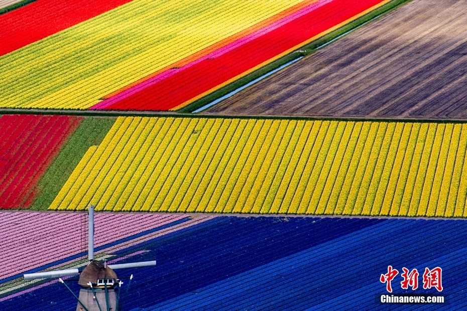 荷蘭利瑟,航拍郁金香花田,美如畫作。