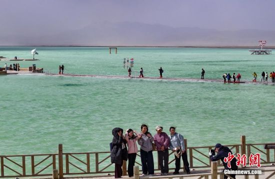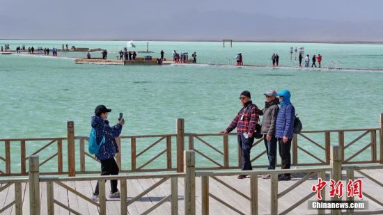 “天空之鏡”茶卡鹽湖美景如畫 游客打卡拍照樂享春光