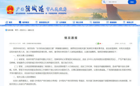 (一)楊某鵬,防城港市公安局江山邊境派出所民警,在7月31日晚出警處置過(guò)程中,溝通表達(dá)不夠規(guī)范嚴(yán)謹(jǐn),引起當(dāng)事人誤解,造成不良社會(huì)影響。防城港邊境管理支隊(duì)黨委對(duì)其進(jìn)行嚴(yán)肅批評(píng)教育,責(zé)令作出書(shū)面檢查。