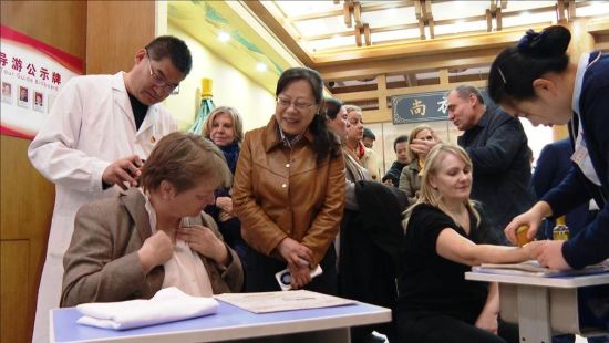 來(lái)賓一行抵達(dá)濱州后,實(shí)地參訪了魏橋國(guó)科(濱州)科技園,深入了解濱州在科技創(chuàng)新與產(chǎn)業(yè)轉(zhuǎn)型方面的實(shí)踐成果。當(dāng)晚,他們夜游黃河樓并深度參與中醫(yī)文化體驗(yàn),期間,他們不僅親身體驗(yàn)了中醫(yī)把脈、拔罐與針灸等傳統(tǒng)技藝,更在與專業(yè)醫(yī)師的交流中零距離感知了中醫(yī)“治未病”的哲學(xué)智慧,外交部領(lǐng)事司領(lǐng)導(dǎo)表示,這種沉浸式文化體驗(yàn),是講好中國(guó)故事、展現(xiàn)地方特色的創(chuàng)新實(shí)踐。多位簽證官由衷贊嘆,親身體驗(yàn)讓他們對(duì)中華文化的理解“從抽象變?yōu)榫唧w”,讓他們切身感受到了中華醫(yī)學(xué)的博大精深,也看到了濱州開(kāi)放包容的城市氣質(zhì)。