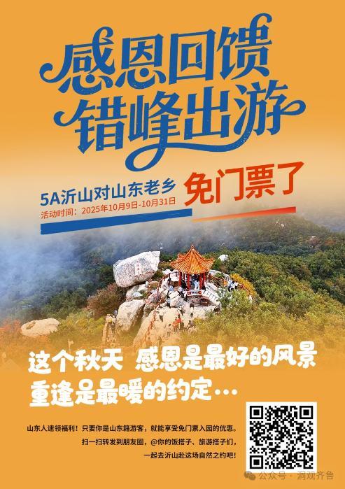 山東臨朐沂山風(fēng)景區(qū)的秋日福利持續(xù)派送中!即日起至10月31日,游客持山東身份證或戶口本即可免門(mén)票入園,趁秋光正好,快來(lái)赴約吧!