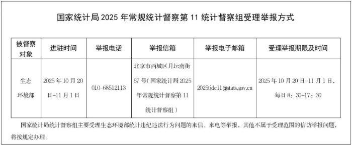第11統(tǒng)計(jì)督察組進(jìn)駐生態(tài)環(huán)境部