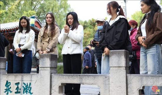 在漱玉泉邊,老撾留學生佩麗娜學著本地人的樣子,將一枚硬幣輕輕投入泉中!奥犝f往水里扔硬幣會有福氣,我許愿能順利畢業(yè),身體健康!彼χf。此行中,留學生們還了解到宋代女詞人李清照與濟南的深厚淵源,在采訪時,她吟誦出了剛學會的“知否知否,應是綠肥紅瘦”的名句,為泉水之旅增添了一抹婉約的文化韻味。