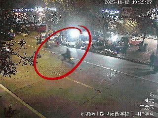 嫌疑人騎著一輛共享單車緩緩進入夜市