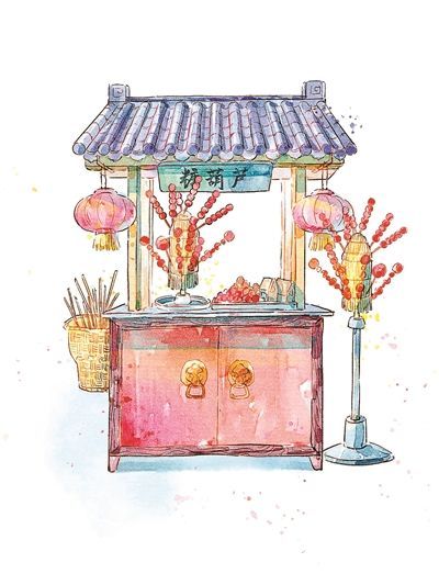 伴隨著糖和山楂的普及,糖葫蘆在清代的北京正式問世。最早的糖葫蘆僅用兩個(gè)山楂串成一串,上小下大,外形更像葫蘆。后來,穿在竹簽上的果子越來越多,種類也不限于山楂了。成書于晚清的《燕京歲時(shí)記》載:“冰糖壺盧(葫蘆)乃用竹簽,貫以葡萄、山藥豆、海棠果、山里紅等物,蘸以冰糖,甜脆而涼!边@時(shí)的糖葫蘆和現(xiàn)代流行款早已差別不大。