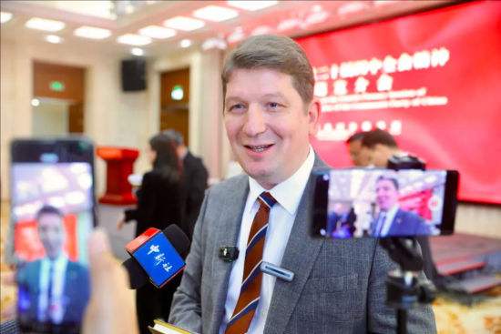 2025年11月17日,二十屆四中全會(huì)精神專題宣介會(huì)在北京舉辦,來自美國、英國、歐盟、瑞士、日本、新加坡、俄羅斯、中東歐、拉美、非洲等30多個(gè)國家和地區(qū)的160多位外國代表出席。圖為俄羅斯中國友好協(xié)會(huì)副主席謝爾蓋·沙羅諾夫接受記者訪問。中新社記者 易海菲 攝
