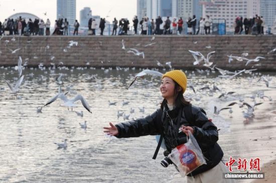 12月2日,山東青島,人與海鷗共赴的 “年度之約”。成群的銀鷗舒展雙翼,在碧海藍(lán)天間翩躚盤旋,時而低空掠過海面,時而停落肩頭覓食,與前來打卡的市民游客近距離互動,讓 “人與海鷗和諧共處” 成為這座濱海城市的初冬名片。中新社記者 梁犇 攝