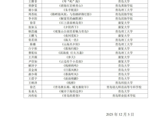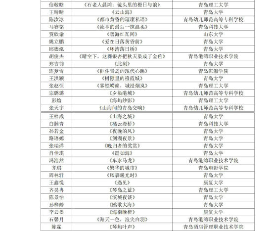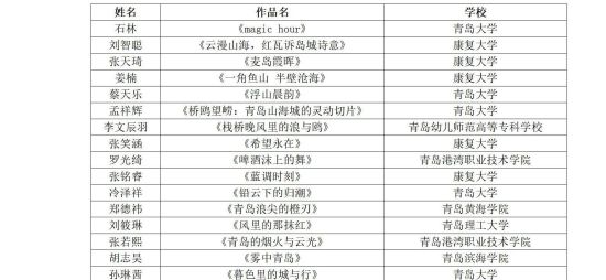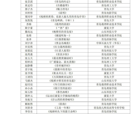 “鏡頭里的青島故事”青島大學(xué)生百幅手機(jī)攝影作品征集入圍名單公示如下:
