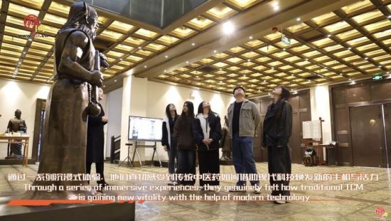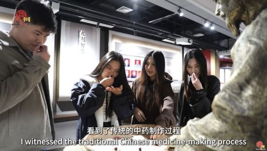 “桂皮在我們國家是做菜的,沒想到在中國是藥材!眮碜岳蠐氲腖OUANGSIYOTHA KIETTISACK(中文名:林俊杰),對桂皮的“雙重身份”感到驚奇!拔覀儑乙灿泄鹌,但是用來做飯的,沒想到在中國能做藥材!彼贿呑屑毐嬲J藥材,一邊記錄中藥的制作步驟。在宏濟堂展館中,留學生們系統(tǒng)了解了中醫(yī)藥從采摘、晾曬,再到炮制到成藥的完整流程,感受到中藥背后深厚的自然哲學與生活智慧。