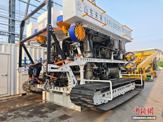 山東未來機(jī)器人有限公司廠區(qū)內(nèi)的深海1500米鋪纜作業(yè)機(jī)器人。中新網(wǎng)記者 劉越 攝