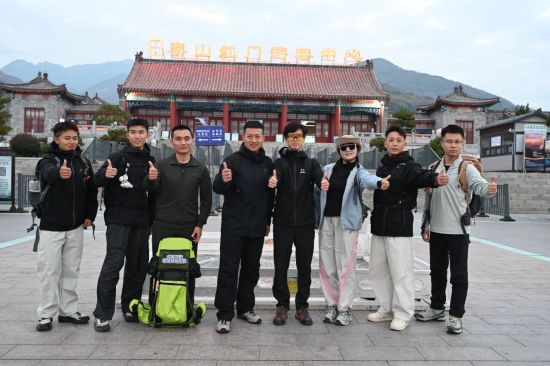 梁成和他的團(tuán)隊(duì)成員在泰山山腳下合影 周盛平 攝