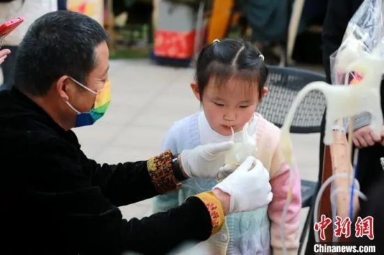 小朋友在東營(yíng)“黃河大集”上體驗(yàn)吹糖人。(資料圖)梁犇 攝