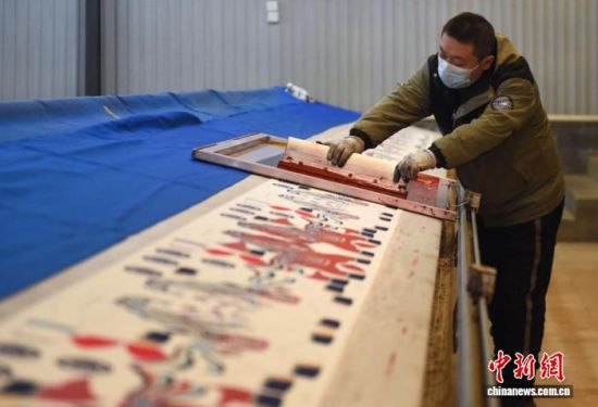 圖為工人在為印刷布料上色。曲正揚(yáng) 攝
