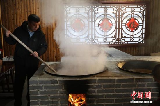 12月21日,正值冬至,山東濟南東阿鎮(zhèn),2025中國福文化節(jié)暨第76屆神農賜福大典舉辦,民眾體驗煉膠工藝。王采怡 攝