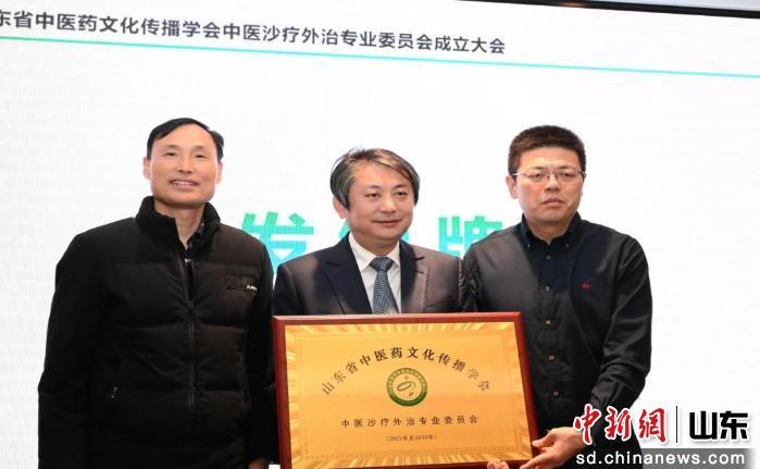 濟南市衛(wèi)生健康委產(chǎn)業(yè)處處長劉世武與山東科技出版社副總編輯韓琳共同為“山東省中醫(yī)藥文化傳播學會中醫(yī)沙療外治專業(yè)委員會”揭牌。