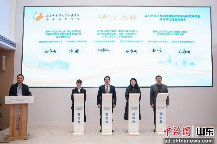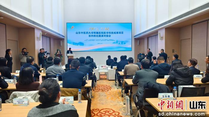 中新網(wǎng)山東新聞12月25日電(周藝偉 魏然)“創(chuàng)新創(chuàng)業(yè)·共創(chuàng)未來(lái)”山東中醫(yī)藥大學(xué)附屬醫(yī)院醫(yī)學(xué)科技成果市內(nèi)轉(zhuǎn)化路演對(duì)接會(huì)24日在山東科技大市場(chǎng)順利落幕。本次活動(dòng)旨在進(jìn)一步推動(dòng)醫(yī)院創(chuàng)新成果更快、更好地走向市場(chǎng),破解臨床研究成果的轉(zhuǎn)化難題。濟(jì)南市衛(wèi)生健康委員會(huì)、濟(jì)南國(guó)際醫(yī)學(xué)中心等單位相關(guān)領(lǐng)導(dǎo),以及山東省內(nèi)外生物醫(yī)藥企業(yè)、投資機(jī)構(gòu)代表等100余人齊聚現(xiàn)場(chǎng),共話中醫(yī)藥科技成果轉(zhuǎn)化新路徑。
