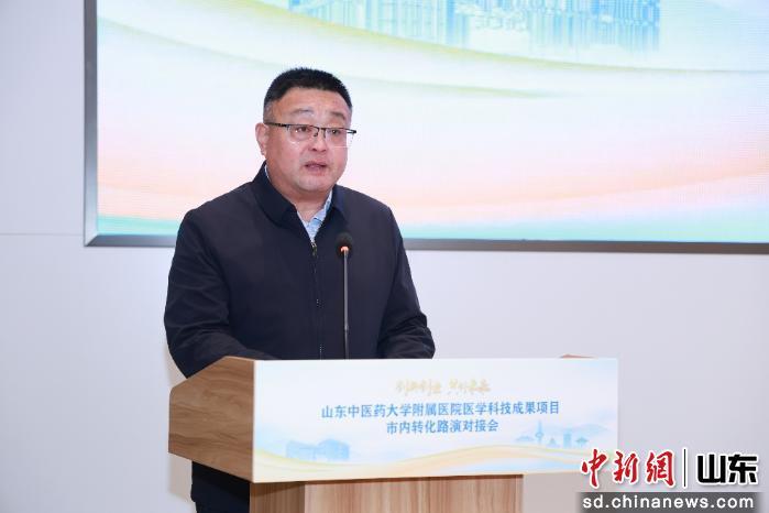 濟(jì)南市科技局黨組成員、副局長(zhǎng)彭文博在致辭中表示,科技創(chuàng)新是引領(lǐng)發(fā)展的核心動(dòng)力,科技成果轉(zhuǎn)化則是打通“科研-臨床-產(chǎn)業(yè)”閉環(huán)的關(guān)鍵紐帶。山東中醫(yī)藥大學(xué)附屬醫(yī)院作為該省中醫(yī)藥領(lǐng)域的龍頭標(biāo)桿,在中醫(yī)傳承創(chuàng)新、中西醫(yī)結(jié)合研究、特色制劑研發(fā)等方面積淀深厚、成果豐碩,其發(fā)展方向與濟(jì)南市生物醫(yī)藥及大健康產(chǎn)業(yè)布局高度契合。濟(jì)南市科技局將持續(xù)深耕“創(chuàng)新創(chuàng)業(yè)·共創(chuàng)未來(lái)”品牌建設(shè),搭建常態(tài)化供需對(duì)接平臺(tái),推動(dòng)“醫(yī)產(chǎn)學(xué)研用”深度融合,助力更多中醫(yī)藥創(chuàng)新成果從“書(shū)架”走向“貨架”,為健康山東建設(shè)注入持久動(dòng)力。