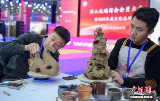 12月26日,手工藝人正在展示陶藝?yán)骷妓。?dāng)日,2025山東工藝美術(shù)博覽會暨“山東手造”精品展在濟南舜耕國際會展中心開幕。本屆展會以“弘揚齊魯傳統(tǒng)文化、打造魯派技藝風(fēng)格”為主題,集中呈現(xiàn)山東工藝美術(shù)的獨特魅力。中新社記者 張勇 攝