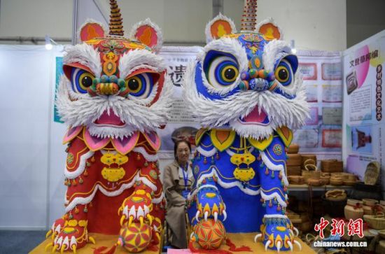 12月26日,泥塑“東方醒獅”亮相博覽會。中新社記者 張勇 攝