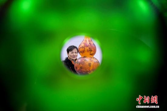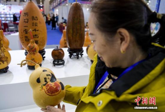 12月26日,觀眾在展會上觀賞“大熊貓葫蘆”。中新社記者 張勇 攝