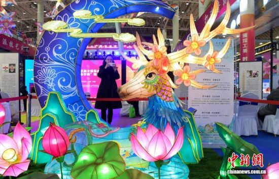 12月26日,觀眾在展會上觀賞“周村花燈”。中新社記者 張勇 攝