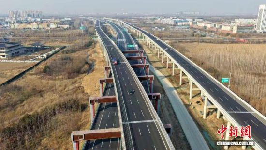 圖為京臺高速齊河至濟(jì)南段。(無人機(jī)照片)山東高速集團(tuán)供圖