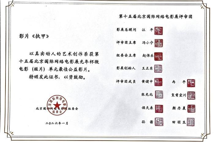 1月9日,第15屆北京國(guó)際網(wǎng)絡(luò)電影展隆重舉行,山東大學(xué)附屬兒童醫(yī)院策劃拍攝的《執(zhí)甲》榮獲第十五屆北京國(guó)際網(wǎng)絡(luò)微電影展微電影(短片)單元最佳公益影片,醫(yī)院副院長(zhǎng)郭磊及影片策劃人員共同參加頒獎(jiǎng)典禮。