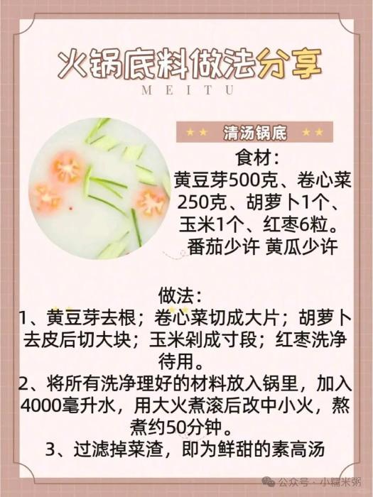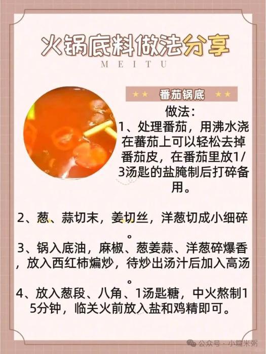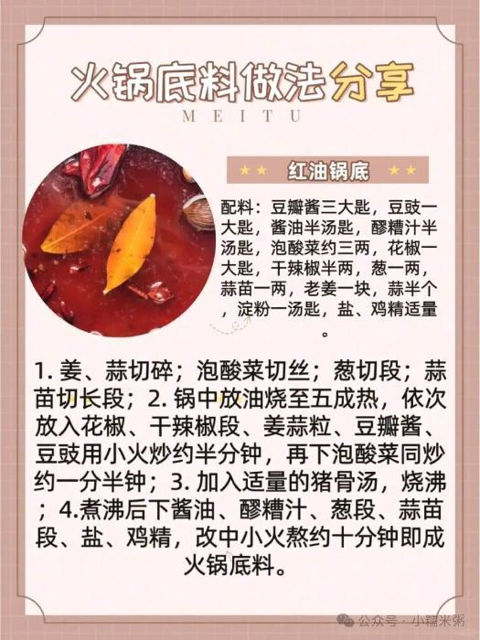 無論是麻辣鮮香的川渝風(fēng)味,還是醇厚濃郁的北方口味,掌握了今天這六款基礎(chǔ)底料的制作方法,你就能隨心所欲地變換出無數(shù)種火鍋體驗(yàn)。準(zhǔn)備好了嗎?從經(jīng)典到創(chuàng)新,從清淡到重口,總有一款能點(diǎn)燃你的味蕾,驚艷你的餐桌。