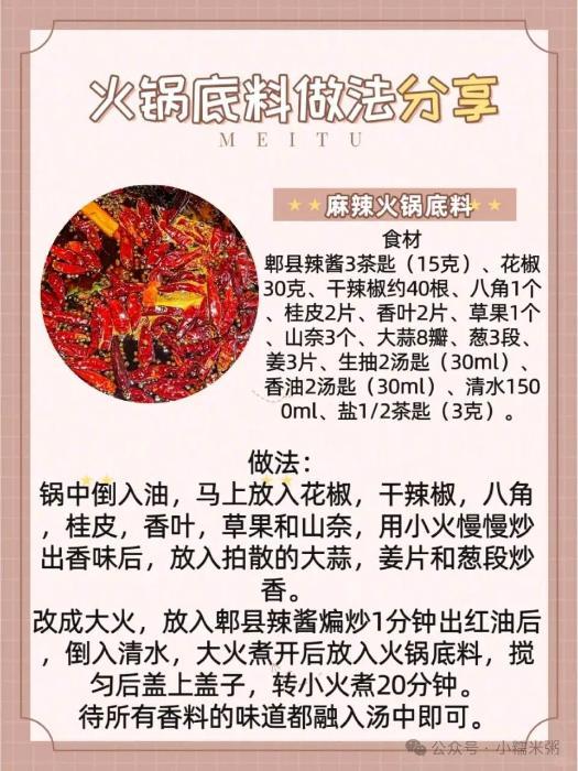 昨天帶大家云探店,走遍了濟(jì)南幾家頗受好評的火鍋店。不少朋友看得口水直流,但無奈距離太遠(yuǎn),或者想在家享受火鍋的溫馨時光。今天就來滿足你們的愿望——一次性學(xué)會六種風(fēng)味的火鍋底料做法,讓你在家也能變身火鍋大師!