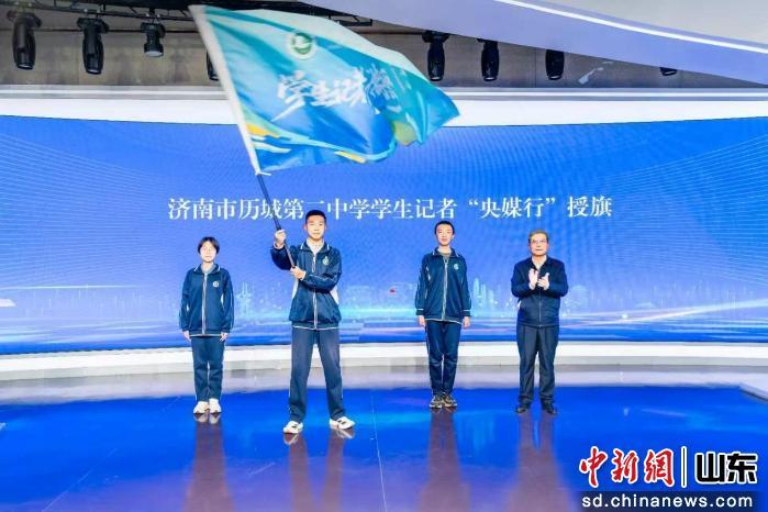 中新網(wǎng)山東新聞1月19日電 當(dāng)鮮紅的隊(duì)旗交到學(xué)生記者手中,濟(jì)南市歷城第二中學(xué)“央媒工作室”18日正式揭牌,“學(xué)生記者央媒行”活動(dòng)同步啟動(dòng)。