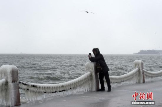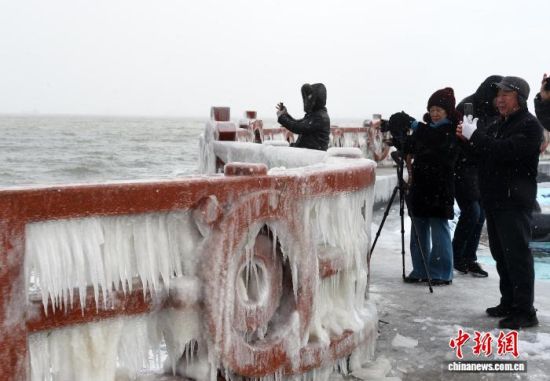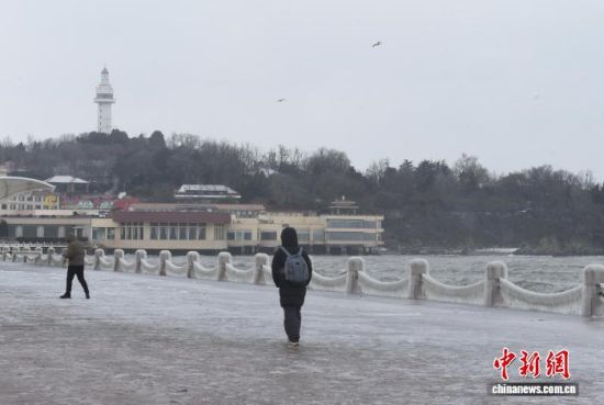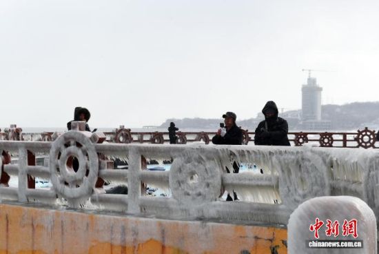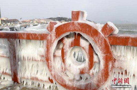 1月20日,受連日大風(fēng)降溫天氣影響,山東煙臺海濱出現(xiàn)冰凌景觀。海浪在拍岸過程中凝結(jié)成冰,如同為海岸披上“冰甲”。王嬌妮 攝