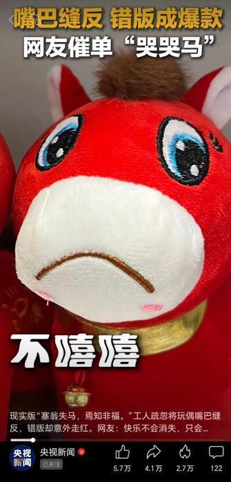 這匹“黑馬”的出現(xiàn),竟是因為工人手滑縫反了嘴巴,微笑臉秒變厭世臉。