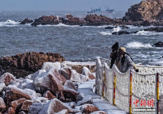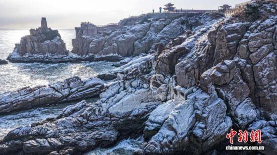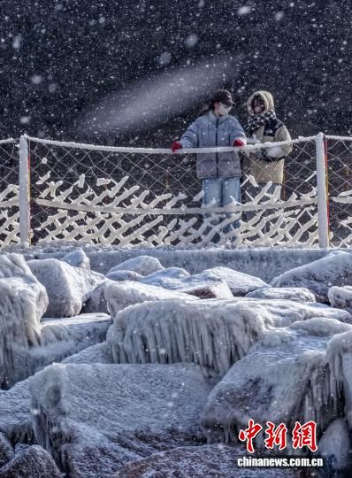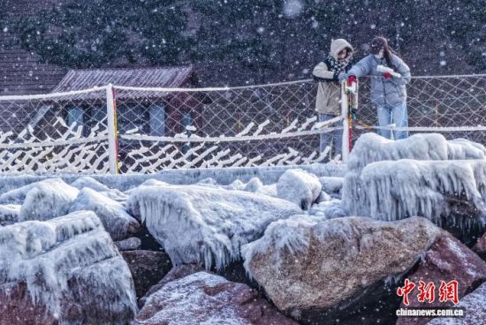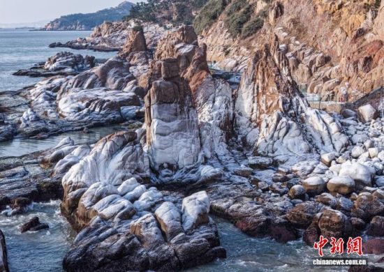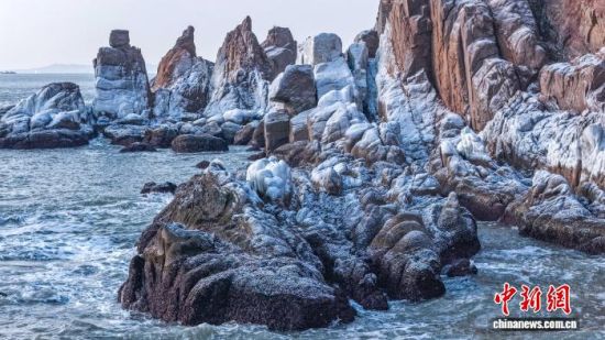 1月22日,山東榮成成山頭景區(qū),海浪濺起的水花在低溫中凝結(jié)成冰掛、冰凌,與礁石相映成趣,勾勒出冬日海岸的獨特景致。近年來,當?shù)赝诰驗I海冬季旅游資源,打造特色旅游項目。李信君 攝