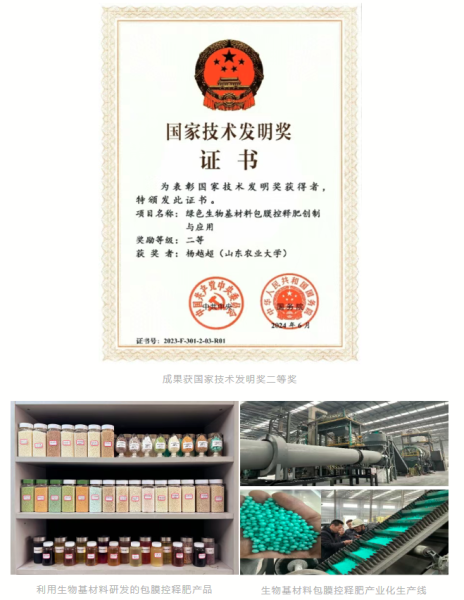 傳統(tǒng)包膜控釋肥以石化產(chǎn)品做膜材,具有膜材成本高、難降解等缺點,對土壤健康造成潛在威脅,綠色生物基包膜技術(shù)是控釋肥制造領(lǐng)域的發(fā)展方向。該成果針對生物基膜材替代存在的“成膜難、包膜難、精準(zhǔn)控釋難”三大技術(shù)瓶頸,通過源頭創(chuàng)新實現(xiàn)了綠色生物基包膜控釋肥關(guān)鍵技術(shù)突破與產(chǎn)業(yè)化。首創(chuàng)超疏水改性、網(wǎng)絡(luò)互穿增密和自修復(fù)增韌技術(shù),疏水性提升90.5%;研發(fā)高效霧化噴涂裝備,包膜均勻度提升150.4%,能耗降低30.1%;創(chuàng)建迭加配伍養(yǎng)分控釋技術(shù),提高了養(yǎng)分釋放與作物需求的匹配度,水稻/玉米等一次性施肥增產(chǎn)6.2%~10.9%。產(chǎn)品遠(yuǎn)銷19個國家和地區(qū),為推動控釋肥料行業(yè)綠色轉(zhuǎn)型和保障糧食安全提供了關(guān)鍵技術(shù)支撐。