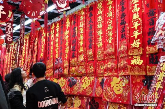 資料圖:在四川成都荷花池市場(chǎng),市民挑選春聯(lián)。隨著春節(jié)臨近,燈籠、春聯(lián)等新春飾品逐漸熱銷(xiāo)。中新社記者 王磊 攝