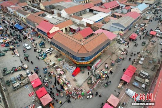 1月29日,山東省濱州市沾化區(qū),春節(jié)將近,馮家鎮(zhèn)“黃河大集”吸引眾多市民前來采購年貨。中新社記者 梁犇 攝